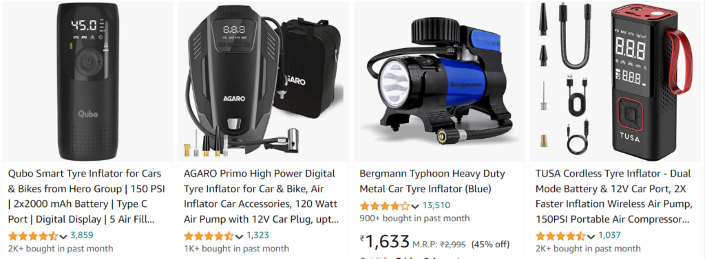 A car tyre inflator air compressor pump is a compact device designed to inflate tyres quickly and efficiently. This gadget works by taking in ambient air, compressing it, and then delivering it into your vehicle’s tyres.