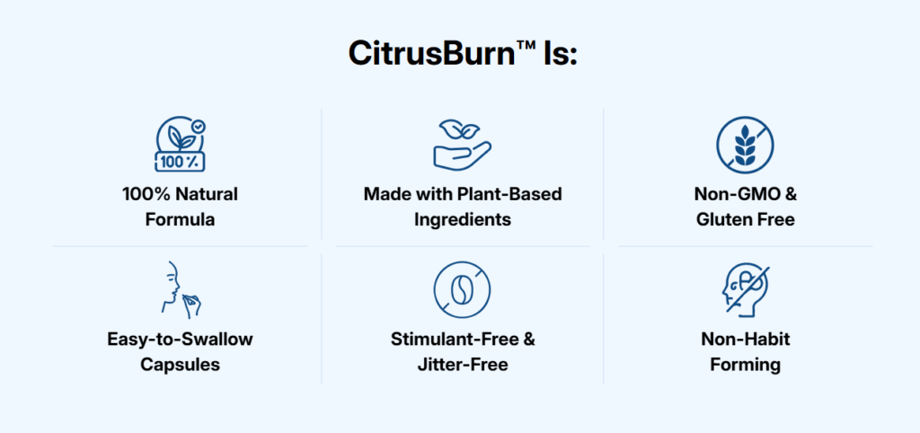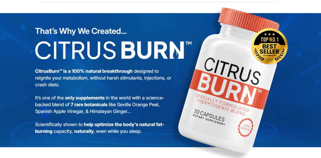 CitrusBurn is a dietary supplement designed to support weight management by helping boost metabolism, increase energy levels ⚡, and assist with fat burning when combined with a healthy lifestyle.