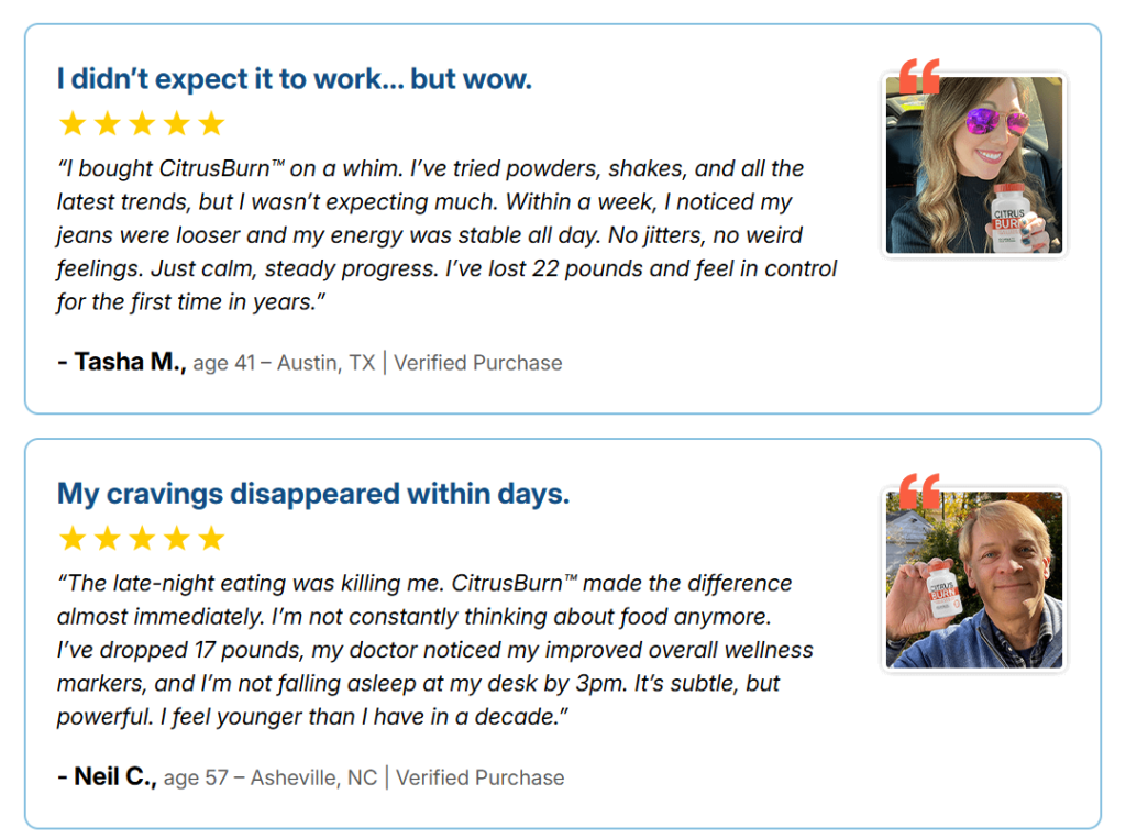 Another testimonial comes from Mike, who struggled with weight management for years. After trying CitrusBurn, he noticed significant changes within weeks. The combination of mental clarity and increased metabolism made all the difference for him.