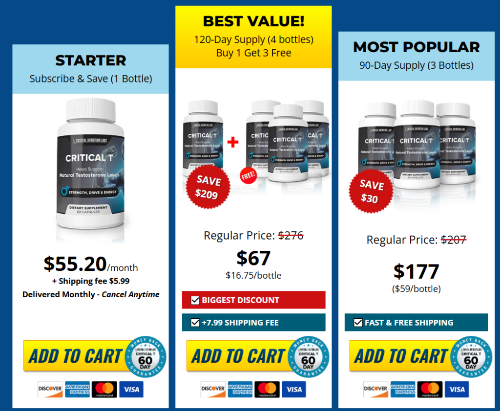 Critical T works by using natural ingredients that support hormone production, improve energy levels, and enhance mental clarity. These ingredients work together to optimize the body’s internal processes.