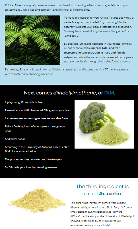 Critical T works by combining a carefully selected blend of natural ingredients designed to support your body’s overall well-being and performance. At its core, the formula targets key areas such as hormonal balance, energy levels, and mental clarity, which are essential for maintaining vitality throughout the day. The active components in Critical T are known to promote testosterone production, enhance stamina, and improve focus, making it a popular choice for those looking to boost their physical and cognitive function naturally.