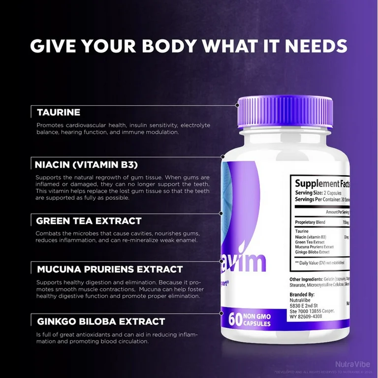 Dentavim operates through a unique blend of natural ingredients specifically formulated to promote oral health. The product contains powerful antibacterial agents that target harmful bacteria in the mouth, reducing plaque and preventing gum disease.