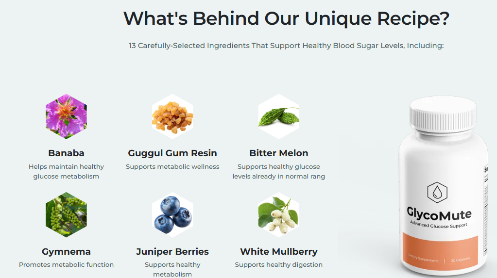 GlycoMute is formulated with a blend of natural ingredients carefully selected for their potential to support healthy blood sugar levels and promote overall metabolic health. Understanding the key components in this supplement can help you see how it may fit into your wellness routine.