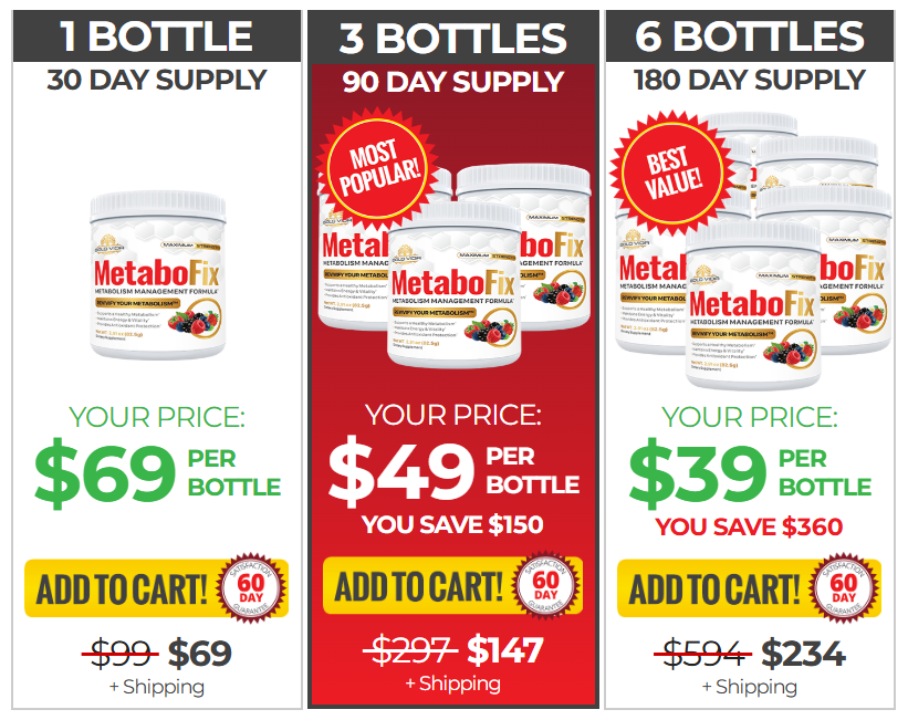 When it comes to purchasing MetaboFix, understanding the pricing and the most effective place to shop for the merchandise is crucial to ensure you get an authentic supplement and the simplest value for your cash. MetaboFix is usually sold exclusively through its official web site, which helps shield customers from counterfeit merchandise and ensures access to any ongoing promotions or discounts.