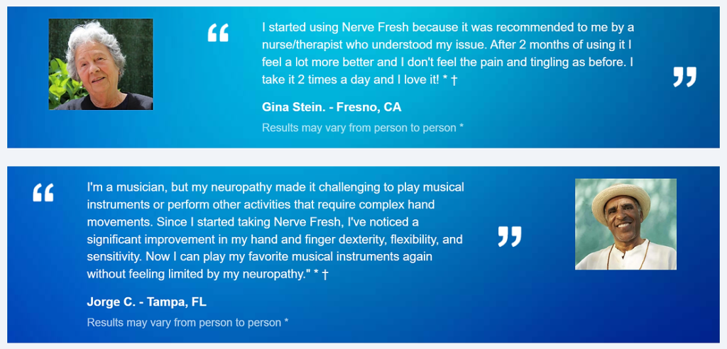 Real users have reported significant relief from neuropathy and nerve pain after incorporating Nerve Fresh into their daily routine. One user mentioned experiencing a significant reduction in nerve pain, allowing them to engage in daily activities without constant discomfort. Another user praised the natural formula’s ability to target the root causes of neuropathy, resulting in improved nerve health and energy levels.
