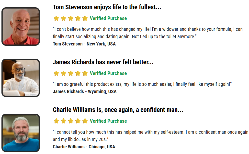 Some testimonials specifically mentioned improved urinary flow and comfort during daily activities. Users emphasized that these benefits made a noticeable difference in their quality of life.