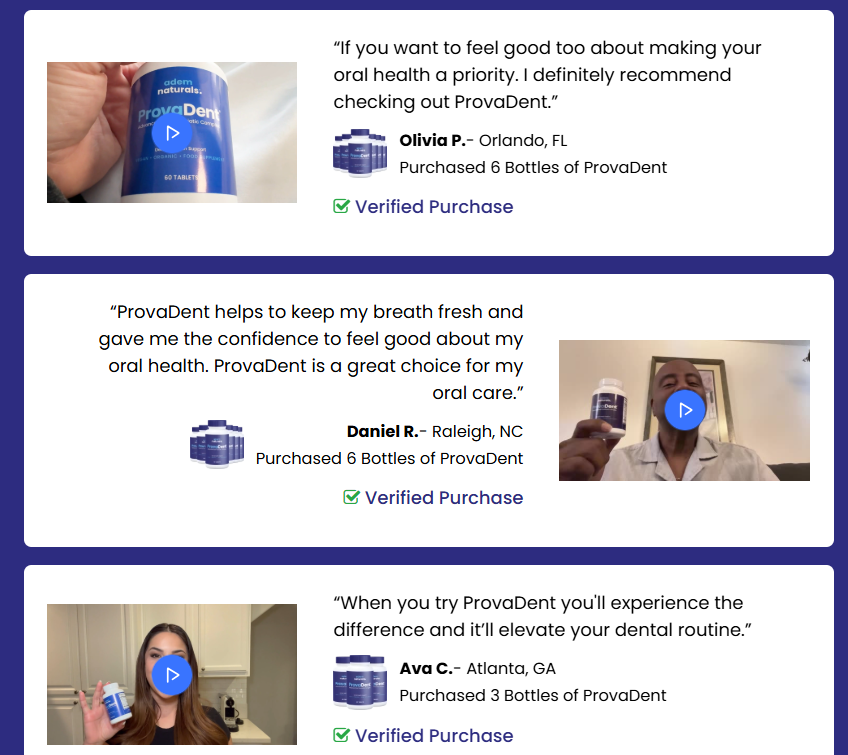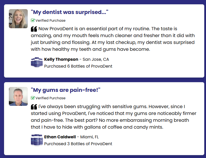 One user shared how ProvaDent transformed their daily routine, making brushing and flossing more enjoyable. Another testimonial highlighted noticeable improvements in gum health within weeks of use.