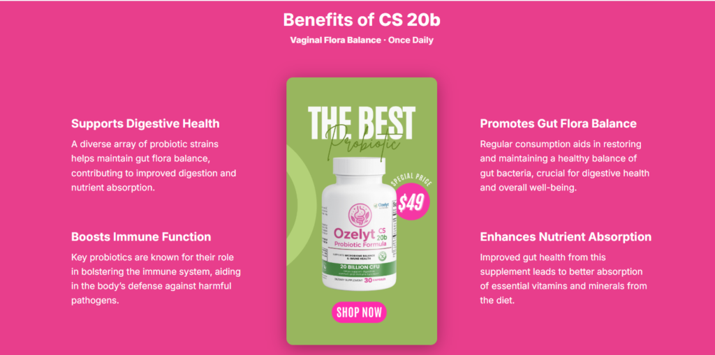 Crafted with a blend of potent natural ingredients, Ozelyt CS 20b aims to restore balance within the microbiome. Many users appreciate its holistic approach, which not only addresses symptoms but also promotes overall wellness.