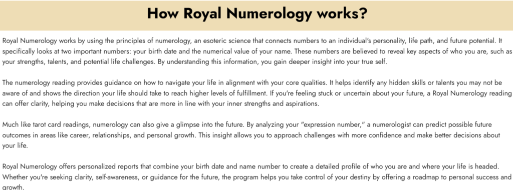 Royal Numerology invites curious minds to delve deeper into their unique numerical signatures but does not promise universal transformation for everyone who seeks its wisdom. Ultimately, the power of any such system rests in how much meaning you choose to derive from it.