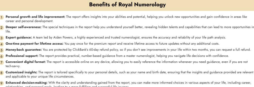 Have you ever wondered what the numbers in your life really mean? From your birth date to your house address, every number carries a hidden message that could unlock secrets about who you are and where you’re headed. Enter Royal Numerology—a unique approach that claims to harness the power of these digits for personal transformation. But does it truly hold the key to changing your life for the better? In this Royal Numerology Review, we dive deep into its concepts, methods, and real-life experiences of those who’ve taken the plunge. If you’re curious about how numerology might shape your destiny, keep reading; you just might find answers waiting among the numbers!