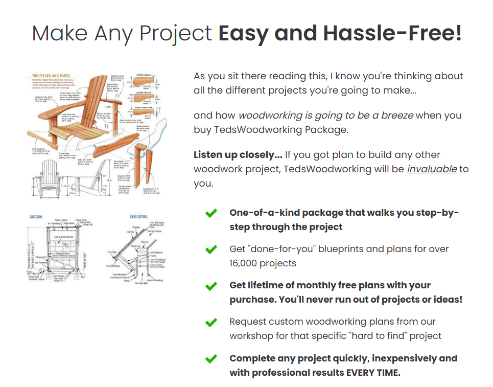 Ted’s Woodworking isn’t just another collection of plans; This program comprehensively guides everyone, regardless of skill level. It offers over 16,000 detailed woodworking projects covering various styles and skill levels. Each plan includes step-by-step instructions, making it easy to follow along regardless of your experience.