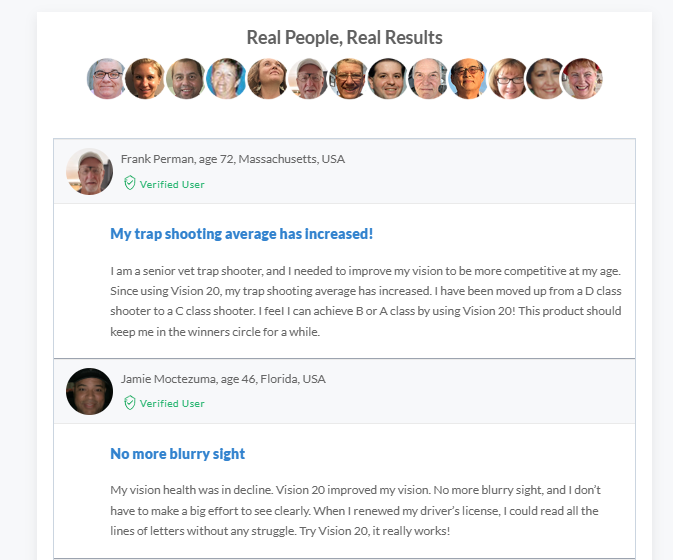 These testimonials reflect a range of benefits that individuals experienced while using the product. Each story contributes to a growing collection of positive feedback surrounding Vision 20’s effectiveness for different visual challenges.